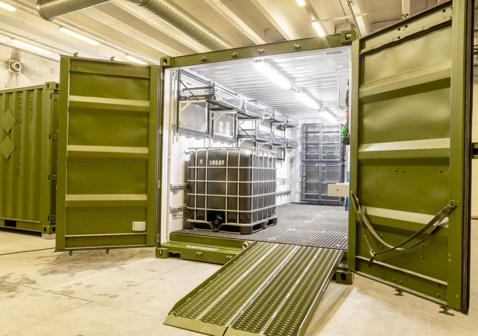 This 10ft container is designed for the safe storage of environmental waste and hazardous materials. It can be used to store a wide range of products, including oils, acids, bases, and more. The container is equipped with a floor tray and drainage barrels.