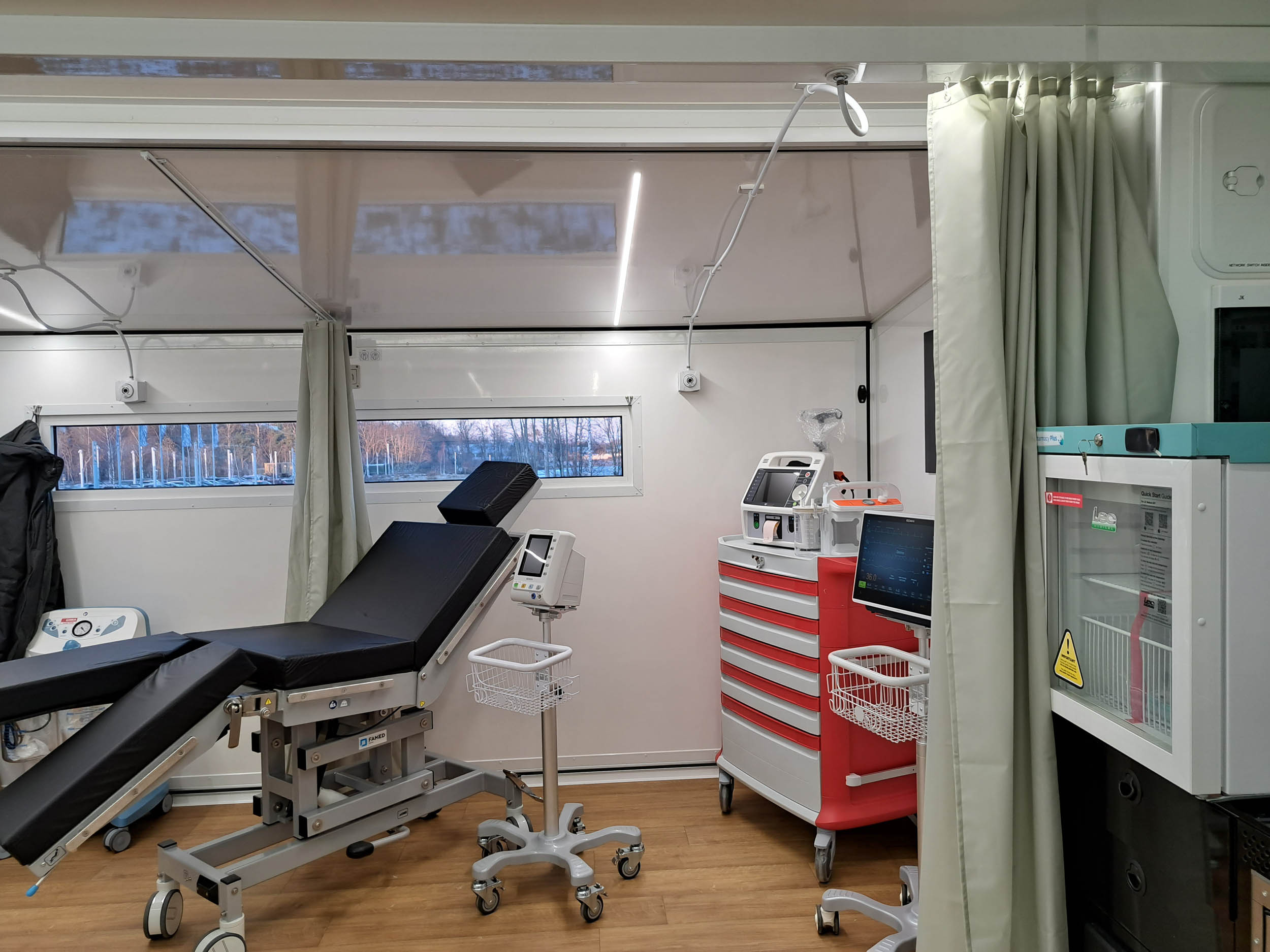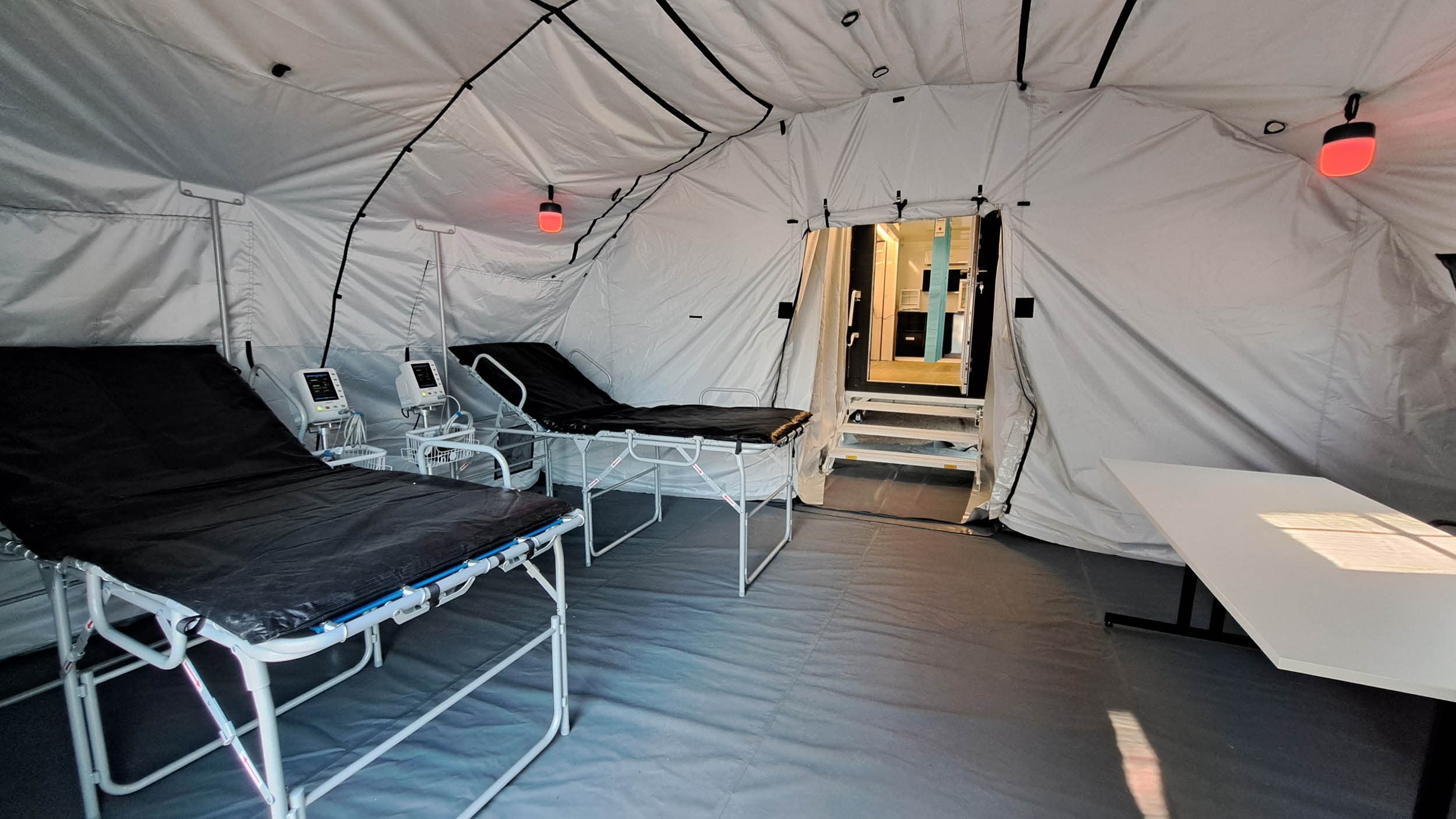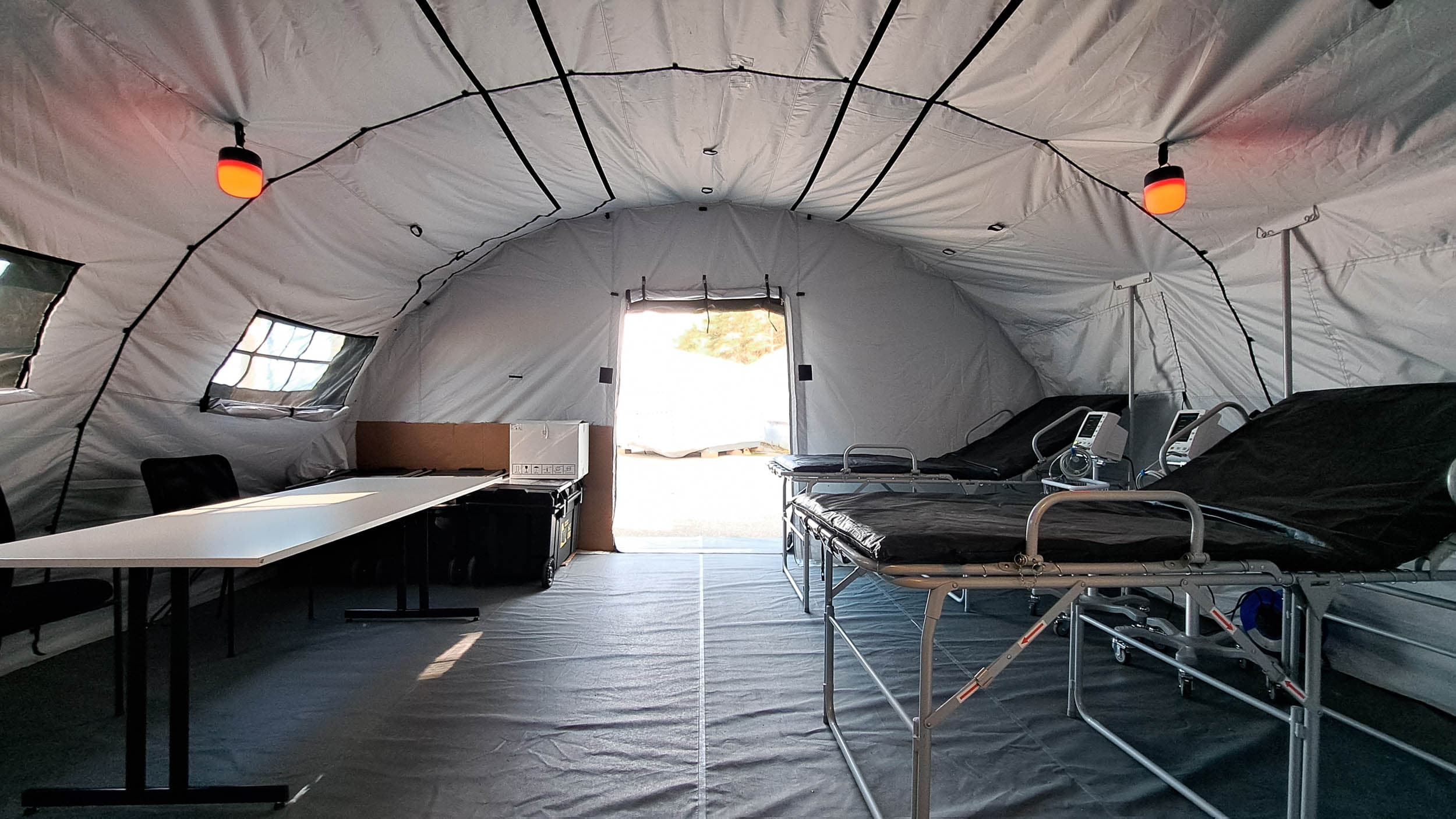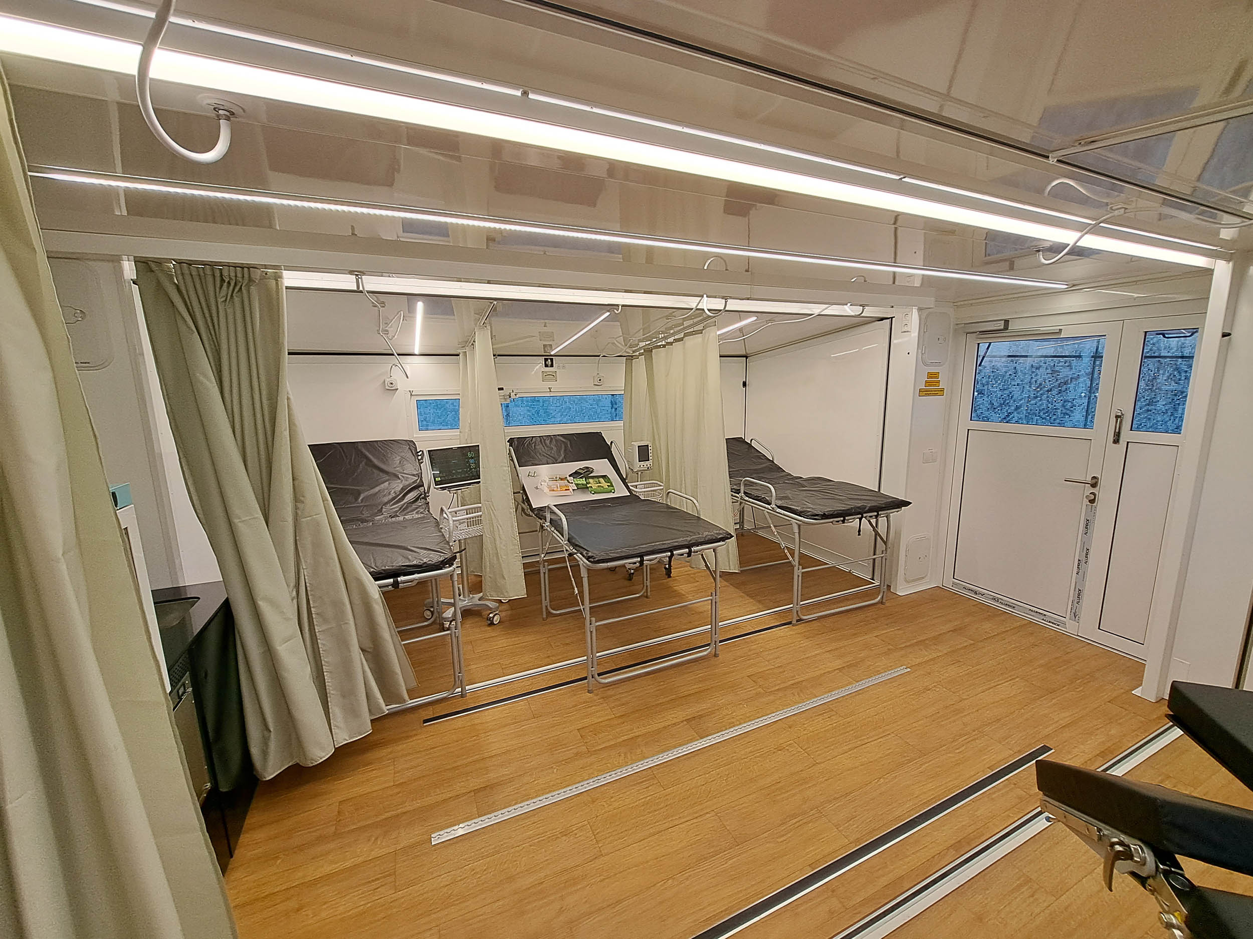 Equipment: Climate control, Dimmable lighting, Ventilation, 6kW generator, Medical equipment based on operational requirements, Triage tent, Water system, Automatic leveling